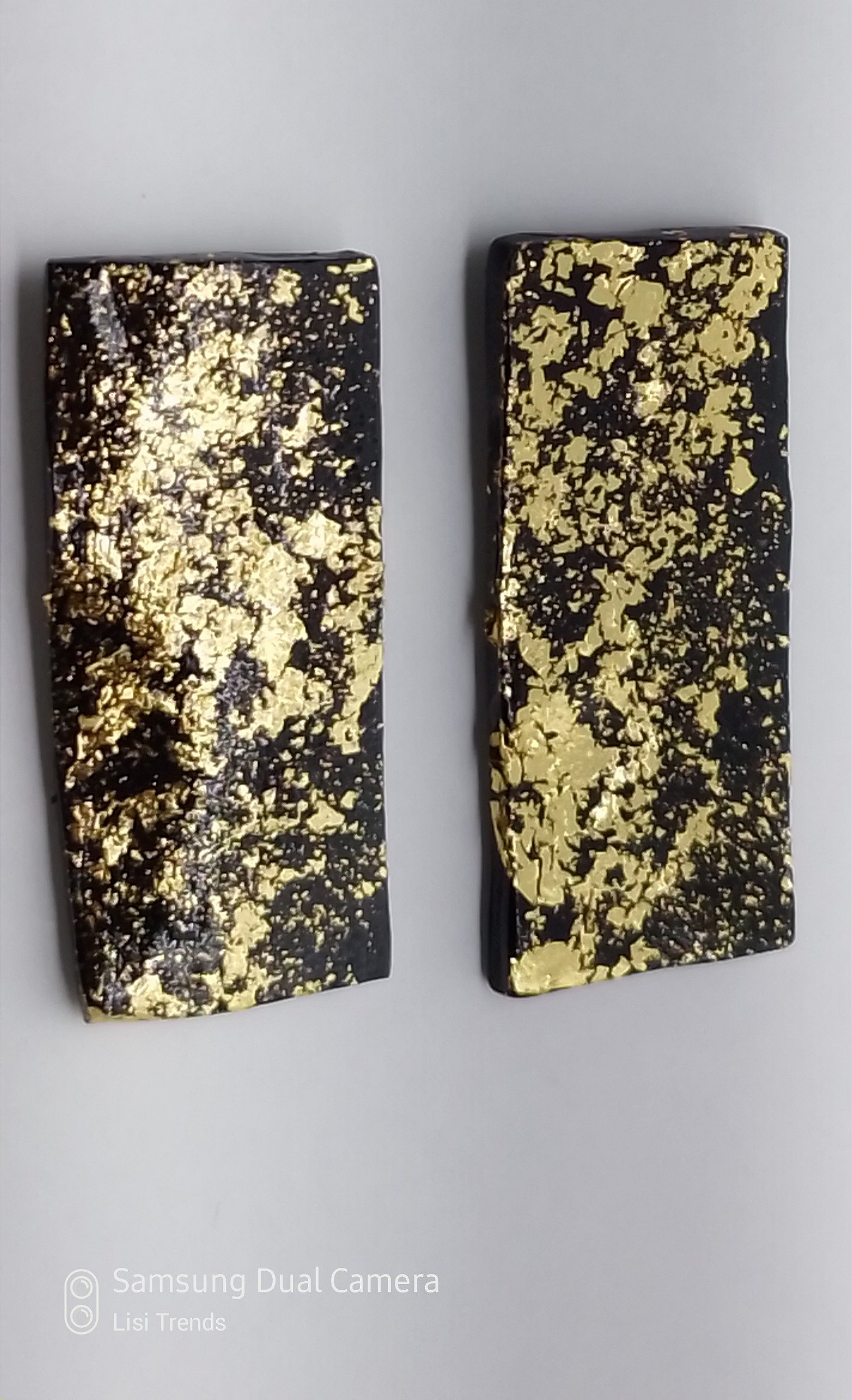 Par de brincos Preto e Dourado, com pinos e tarrachas folheados a Ouro 18k.