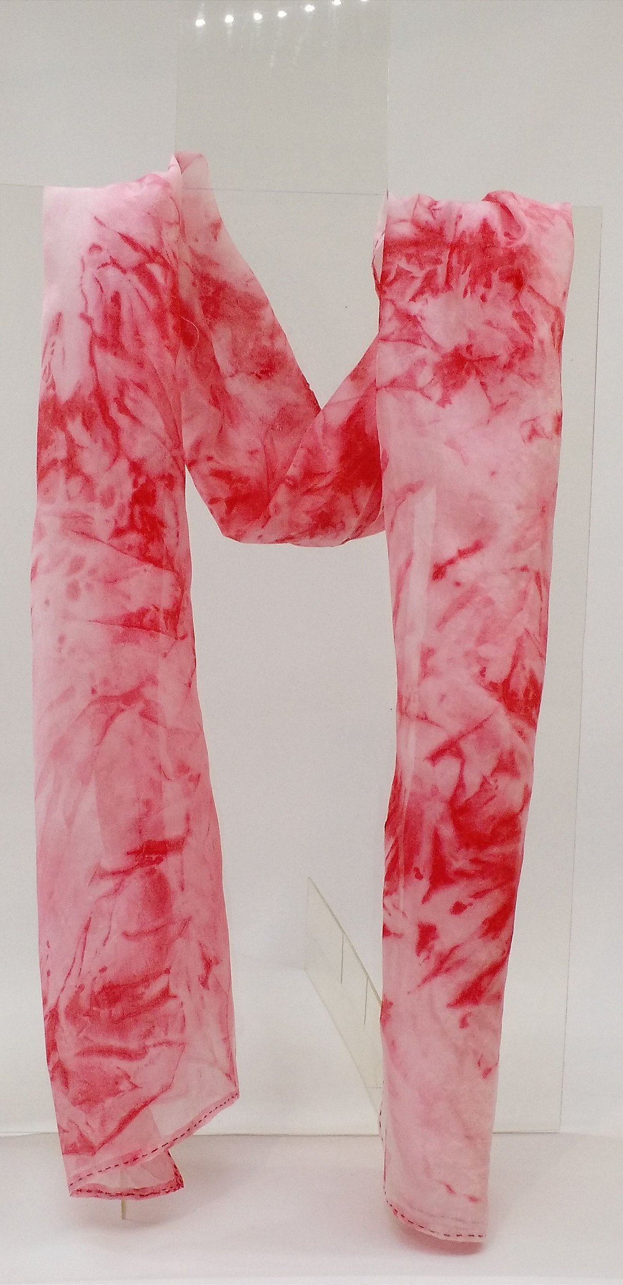 Lenço em seda pintado à mão, estampa exclusiva que se assemelha a folhas vermelhas.